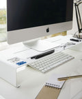 Deze pc monitorstandaard van Yamazaki is eenvoudig en stijlvol. Buiten je beeldscherm kun je er ook je pennen, paperclips en andere kantoorbenodigheden bewaren. Gemaakt van staal en ontworpen in Japan.
