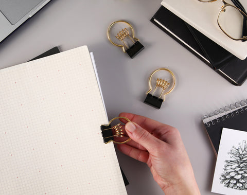 Met de paperclip en penhouder in een, in de vorm van een lichtpeertje, kunnen papieren handig bij elkaar gehouden worden, compleet met een handige pen. De clip is volledig gemaakt van metaal