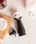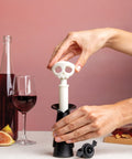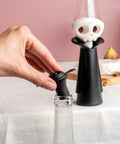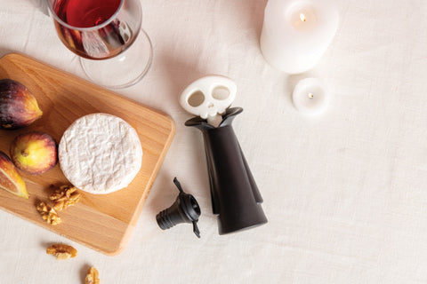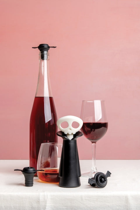 Met de Spookelier van Ototo voeg je een griezelige touch toe aan wijnflessen én houd je je wijn langer vers. Deze slimme set bevat een vacuümpomp en drie stoppers die lijken op vleermuizen. Het gebruik is kinderspel: plaats een stopper in de fles, trek de Spookelier een paar keer omhoog en creëer zo een vacuüm. Wanneer je een ‘klik’ hoort, weet je dat de fles perfect afgesloten is. Klaar met bewaren? Duw de knop opzij om het vacuüm vrij te geven. De stoppers kunnen gewoon in de vaatwasser, maar de pomp moet met de hand gewassen worden.