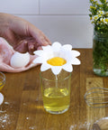 Met daisy mislukt het bakken niet meer! Plaats de bloem gewoon op de beker, breek een ei en het zal je ei eenvoudig scheiden.