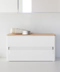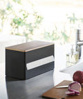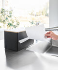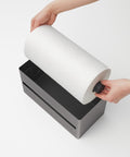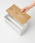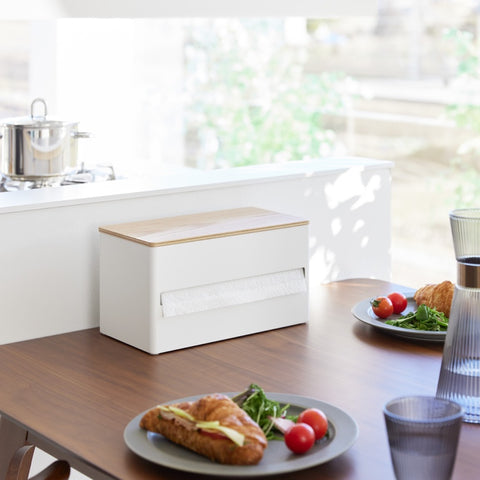 Deze keukenrolhouder van Yamazaki is een stijlvolle toevoeging aan iedere keuken, met zijn stevige stalen behuizing en houten deksel. Er past één keukenrol in en draait soepel mee, waardoor het met één hand af kunt scheuren.