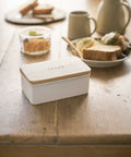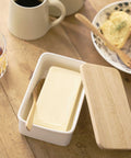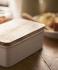 Deze eenvoudige keramische botervloot van Yamazaki heeft een vintage stijl en voegt een retrolook toe aan het interieur. De fijne combinatie van het witte keramiek en natuurlijke hout zorgt voor een zacht accent in je keuken. Gemaakt van keramiek en hout en ontworpen in Japan.
