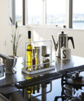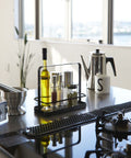 Op dit simpele en stijlvolle kruidenrek kan een grote verscheidenheid aan kruiden of oliën worden gezet. Zowel geschikt voor in de keuken als op de eettafel. Gemakkelijk te dragen en te verplaatsen. Gemaakt van staal.