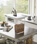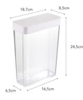Bewaar ontbijtgranen of andere droge voedingsmiddelen in deze stijlvolle opbergdoos. Door zijn slanke vorm past hij perfect in een kast of in het zijvak van een koelkast.