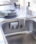 Bewaar je sponzen slim en stijlvol. Door het ontwerp houd je sponzen en afwasborstels droog en schoon. Met de meegeleverde zuignappen bevestig je hem eenvoudig en stevig aan de binnenkant van de spoelbak.