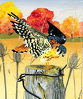 De kleinste valk van Noord-Amerika heeft ongeveer de grootte en vorm van een treurduif, maar heeft toch de felle intensiteit van een roofdier in zijn kleine lichaam. Het is een van de kleurrijkste roofvogels; de leiblauwe kop van het mannetje contrasteert elegante met een roestrode rug en staart. Valken strijken neer op draden of palen, of zweven met het gezicht in de wind, fladderend en aanpassend hun lange staarten om op hun plaats te blijven. De valk neemt in delen van hun leefgebied af, maar jij kunt ze helpen door nestkasten neer te zetten. Het Cornell Lab of Ornithology heeft QR-codes ontwikkeld waarmee je rechtstreeks vanaf je smartphone naar de liedjes en roepen van honderden vogels kunt luisteren. NYPC heeft deze technologie gebruikt om deze vogels te laten zingen terwijl je de puzzel voltooit. De QR-Code staat op de informatieve poster die erbij geleverd wordt. Download gewoon de gratis Bird QR-app en scan de QR-codes naar iedere vogels om hem te horen zingen. Het is een interactieve manier om de technologie van vandaag te combineren met traditioneel puzzelplezier! De puzzel heeft 1000 stukjes en heeft een linnen stijl afwerking zodat de puzzel minder glimt. Aanbevolen leeftijd: 13+ jaar.