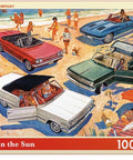 Op deze puzzel van New York Puzzle Company staat een vintage adverentie afgebeeld van General Motors. Op de advertentie is te zien hoe mensen genieten van een dagje strand mét hun prachtige cabrio's! De puzzel heeft 1000 stukjes en heeft een linnen stijl afwerking zodat de puzzel minder glimt. Aanbevolen leeftijd: 13+ jaar.