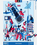 Het is een drukke en bruisende dag in de radio- en opname studio, zoals te zien is op deze puzzel van New York Puzzle Company! Een team van mensen haast zich terwijl ze hun taken uitvoeren. Het is 'on-air' tijd en het personeel staat klaar met laptops, klemborden en platen. Deze scène is ontworpen in opdracht van National Public Radio. De puzzel van New York Puzzle Company heeft 500 stukjes en heeft een linnen stijl afwerking zodat de puzzel minder glimt. Aanbevolen leeftijd: 10+ jaar.