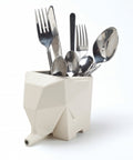 De Jumbo Drainer van Peleg Design houdt je gezelschap tijdens het afwassen en helpt ook met het het drogen van je bestek. Plaats het olifantje naast de gootsteen met zijn slurfje net over de rand en vul hem met het gewassen bestek. Het resterende water druppelt dan terug de gootsteen in zodat het niet over je aanrecht verspreidt. Je kunt Jumbo ook in de badkamer zetten zodat je een droge plek hebt voor je tandenborstels.