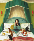 Sommige ochtenden zijn bedoeld om in bed door te brengen. Dan kun je daarna heerlijk ontspannen door deze schilderachtige puzzel van New York Puzzle Company te leggen. Wanneer je de puzzel af hebt, zie je hoe een jonge vrouw en haar kattenvriendjes ontbijten in een luxueus bed. De puzzel heeft 500 stukjes en heeft een linnen stijl afwerking zodat de puzzel minder glimt. Aanbevolen leeftijd: 10+ jaar.