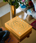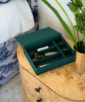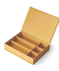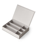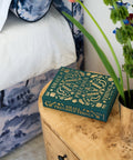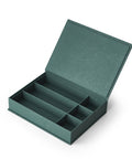 Deze opbergdoos is ontworpen om open te vouwen als een boek en heeft 6 binnencompartimenten, waaronder 3 grote en 3 kleine. Deze compartimenten maken het de perfecte plek om je sleutels, sieraden, pennen, oortjes en andere kleine waardevolle spullen in op te bergen. De doos is bedekt met een weelderige stof en heeft een folieprint op de cover en de rug, waardoor het een luxe uitstraling krijgt. Wanneer de doos gesloten is, lijkt het net een fancy koffietafelboek, zodat het zowel een functionele als decoratieve toevoeging aan je huis is.