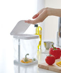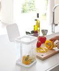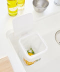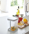 Dit eenvoudige compost bakje van Yamazaki is een handig keukenhulpmiddel. Dankzij het bakje houd je het aanrecht schoon tijdens het koken.