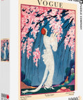 In het Spring Fashions-nummer van 15 maart 1919 meldde Vogue dat er "hints of the Restoration period" waren in de nieuwe mode. "Er zijn bepaalde lijnen die worden weergegeven door deze smalle rokken, een zekere vrijheid van de corsage en soms een beetje lange en smalle sleep, die me het gevoel geven een 'Merveilleuse' te hebben gezien", schreef de Parijse vertegenwoordiger van het tijdschrift. Helen Dryden bracht haar tot leven in een prachtige omslagtekening van een hooghartige en uiterst elegante femme du monde omlijst door een overvloed aan roze kersenbloesems in een arcadische tuin. Deze puzzel van New York Puzzle Company heeft 1000 stukjes en heeft een linnen stijl afwerking zodat de puzzel minder glimt. Aanbevolen leeftijd: 13+ jaar.