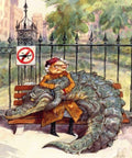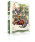 Op deze geinige puzzel van New York Puzzle Company zie je een stoere dame op een bankje zitten met haar verdrietige krokodil omdat krokodillen daar niet zijn toegestaan! De afbeelding is geïllustreerd door Peter de Sève. De puzzel heeft 500 stukjes en heeft een linnen stijl afwerking zodat de puzzel minder glimt. Aanbevolen leeftijd: 10+ jaar.