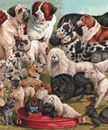 Op deze puzzel van New York Puzzle Company staat een groots hondenportret van de beste vriend van de mens! De Sint Bernard staat boven in beeld en houdt toezicht op de familie, waaonder de Collie, Terriers, Boxers, Whippets en de Dalmatiër. De puzzel heeft 1000 stukjes en heeft een linnen stijl afwerking zodat de puzzel minder glimt. Aanbevolen leeftijd: 13+ jaar.