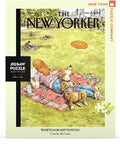 Op deze puzzel van New York Puzzle Company is een omslag te zien van de New Yorker waarop een hond en zijn baasje heerlijk genieten van een ontspannen middag in het park.