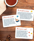 Trek je gebreide trui en pluizige pantoffels aan, steek je favoriete kaars aan en omarm in het moment zijn met behulp van de manieren van hygge. Deze set van 100 kaarten van Gift Republic geeft je hygge-hacks over hoe je een gelukkiger en gezelliger leven kunt leiden.