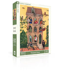 Op de Treasure Trove puzzel van New York Puzzle Company is een levendige afbeelding van Jenny Kroik afgebeeld. De illustratie laat een sfeervol bruinstenen gebouw vol personages en verrassingen zien. Van een muziekfanaat die geniet van zijn favoriete platen, tot een nieuwsgierige kat op het dak; elk detail vertelt zijn eigen verhaal. Buiten zit een vrouw rustig op een bankje, omringd door weelderig groen, terwijl een ondeugende eekhoorn langs een nabijgelegen boom hee rent.