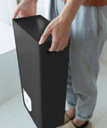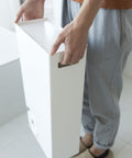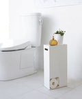Wil je minder vaak naar de voorraadkast voor toiletpapier, maar wil je niet naar stapels toiletpapier kijken, dan is deze houder van Yamazaki wellicht de oplossing voor jou! Open de bovenkant, stapel tot 8 rollen en plaats de houder dan terug op zijn plaats dankzij het handvat. Dankzij het slanke ontwerp past de houder in krappe ruimtes en de kleine plank is zelfs een mooie plek voor decoraties of zelfs een smartphone.