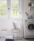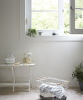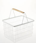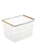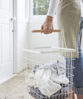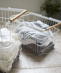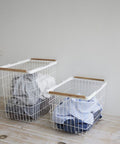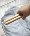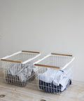 Stijlvolle wasmand gemaakt van gepoedercoat staal. Met twee handvatten van hout.