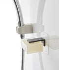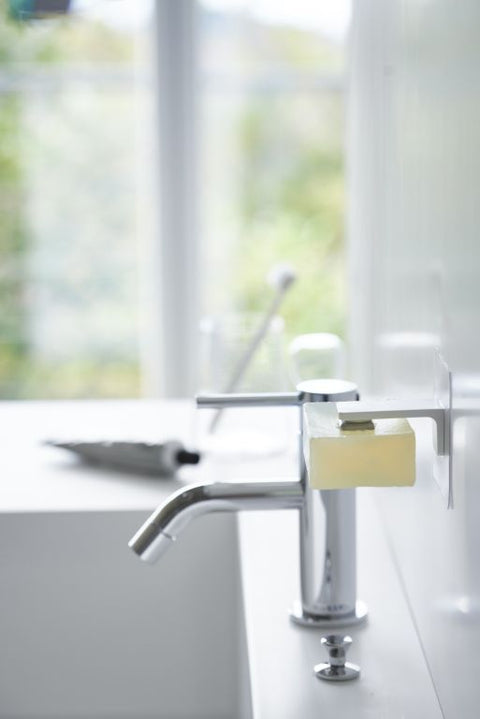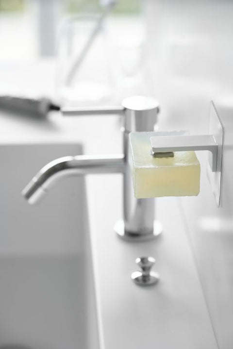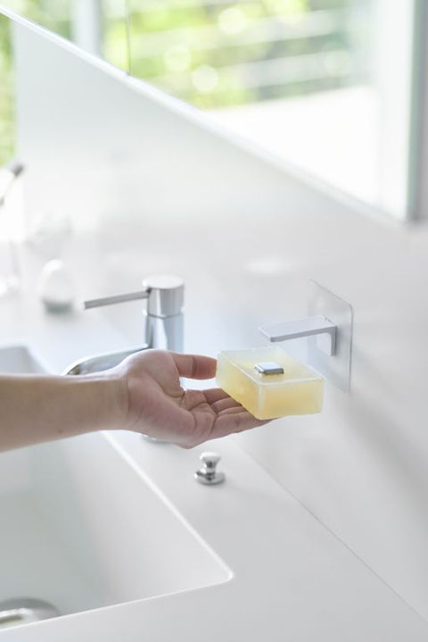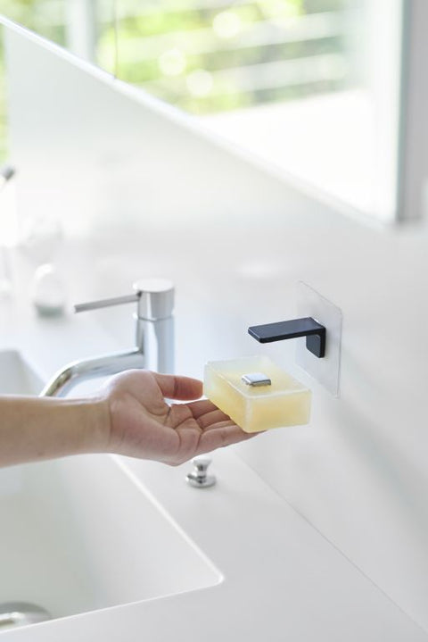 De Yamazaki zeep houder bespaart je kostbare ruimte op je wasbak omdat je hem moeiteloos monteert aan de muur. Naast dit ruimtebesparende aspect, zorgt de houder er ook voor dat de zeep beter droogt en daardoor langer bruikbaar blijft. Het installatieproces is eenvoudig: nadat je de muur hebt schoongemaakt kun je de bijgeleverde haak op een vlak muuroppervlak plakken en hier de zeep houder op vastklikken. Plaats daarna het stalen plaatje in de zeep en hang hem aan de jpider door middel van de magneet.