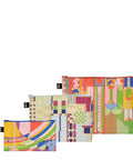 De set bestaat uit 3 pockets, ieder met een andere afmeting en is perfect om bijvoorbeeld je make-up, tandenborstel, schoon ondergoed, paspoort, camera of mobiele telefoon in op te bergen. Afmetingen: Mini Pocket 13 x 23 cm, Midden Pocket 20 x 27 cm, Max Pocket 25 x 32 cm. Ze zijn gemaakt van 100% gerecycled polyester en tijdens het printen is geen gebruik gemaakt van water. Ze zijn daarnaast ook waterbestendig.