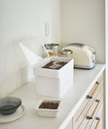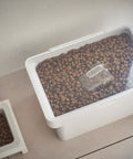 Bewaar het eten voor je huisdieren veilig en vers in deze moderne opbergdoos van Yamazaki. De organizer is volledig luchtdicht om te voorkomen dat vocht en geurtjes ontsnappen en om de smaak te behouden. Met de meegeleverde maatbeker kunnen zelfs de laatste kruimels probleemloos worden uit de doos worden geschept. Om de hygiëne te behouden, kun je de container uit elkaar halen om zo eenvoudig schoon te maken.