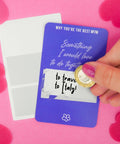 Laat je moeder weten hoe je je echt voelt met de DIY Scratch Cards van Gift Republic. Dit doosje bevat kaartjes die je zelf kunt personaliseren om je moeder te laten weten waarom je haar zo waardeert. Schrijf jouw persoonlijke boodschap of reden op ieder kaartje en plak een van de meegeleverde krasstickers erover om het geheim te houden. Wanneer je moeder de vakjes openkrast, onthult zij jouw liefdevolle woorden en wordt verrast met een unieke en persoonlijke boodschap. Dit cadeau is meer dan een attent gebaar; het is een schat vol liefde die lang gekoesterd zal worden.