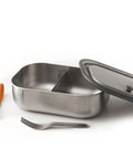 Deze lunchtrommel van Black+Blum is 100% lekvrij waardoor jij met een gerust hart je lunchgerechten mee kunt nemen naar het werk! Het design is eenvoudig maar is voorzien van allerlei handige functionaliteiten. Het functionele ontwerp is tijdloos en esthetisch met een retro utilitaire uitstraling. In wezen is het een stalen trommel, maar de zorgvuldig overwogen kenmerken geven hem een zachtere ergonomische uitstraling. Het ventiel op de deksel zorgt voor een lekvrije ervaring. De klep moet open zijn om de deksel te openen en stevig naar beneden worden gedrukt om te sluiten. De siliconen band zorgt voor extra veiligheid en houdt het deksel op de basis. Daarnaast houdt de band de roestvrijstalen vork stevig op zijn plek. Als laatste kun je dankzij de verwijderbare verdeler je eten gemakkelijk ordenen en van elkaar scheiden.