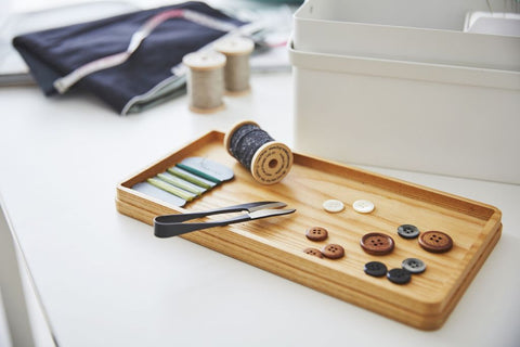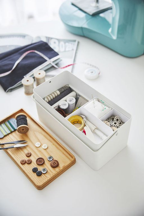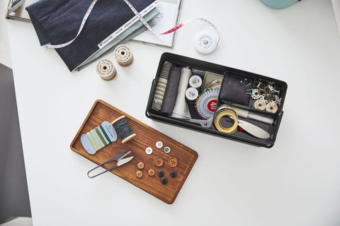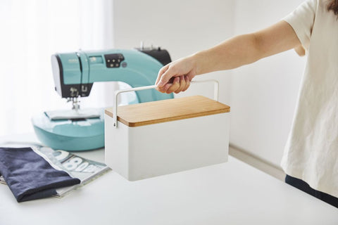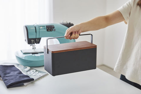Deze doos van Yamazaki is de beste manier om naaiartikelen stijlvol op te bergen zonder al te veel plaats in te nemen. De combinatie van hout en staal voegt een moderne charme toe aan iedere kamer. Dankzij het handvat is de doos ook gemakkelijk te verplaatsen.