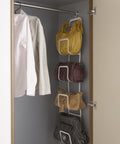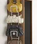 De beste manier om handtassen op te bergen. Hij kan zowel in de kast of aan de deur worden opgehangen, of gewoon met schroeven aan de muur worden bevestigd. De componenten zijn afneembaar, zodat u de maat naar wens kunt aanpassen. Gemaakt van staal en ontworpen in Japan.