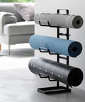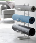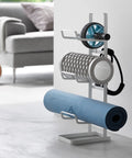 Dit rek van Yamazaki is perfect voor het opbergen van sportaccessoires, wanneer je graag thuis yoga, pilates of een andere workout doet. Het rek heeft drie niveaus voor het opbergen van yogamatten, schuimrollen en andere benodigdheden. Daarnaast is het uitgerust met een verstelbare haak voor extra ophangruimte, zodat je alles makkelijk bij de hand hebt tijdens een training.