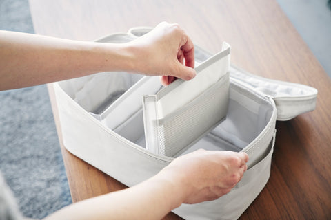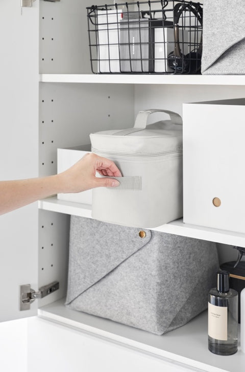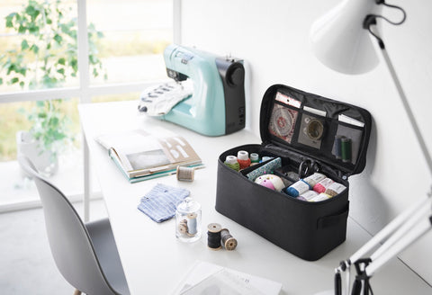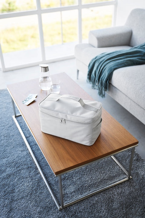 Deze praktische opbergtas van Yamazaki is ideaal om kleine spullen, zoals EHBO- of naaibenodigdheden op te bergen. De tas beschikt over verdelers met praktische gaasvakken die zorgen voor een nette opslag. Dankzij het compacte design past de tas gemakkelijk in lades of op planken.