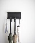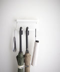 Deze parapluhouder van Yamazaki kun je aan de muur bevestigen zodat je geen kostbare vloerruimte hoeft in te leveren. voor je entree blijft alles netjes georganiseerd en klaar voor gebruik, en dat in een handomdraai. Paraplu's kunnen nu met gemak worden opgehangen en zullen nooit meer in de weg staan. En hoewel het is ontworpen als minimalistisch en compact, heeft het nog steeds een handig bakje voor al die essentiële spullen die je snel wilt pakken voordat je vertrekt. Van kleingeld tot je favoriete lippenstift en je sleutels, alles heeft een plekje op deze het plankje. Naast paraplu’s kun je ook petten, tassen en sjaals ophangen aan de stang. Of gebruik de meegeleverde haken om bijvoorbeeld schoenlepels of andere kleine items aan te hangen.