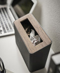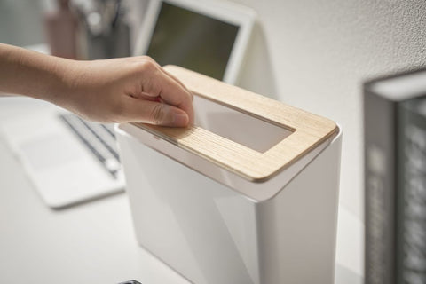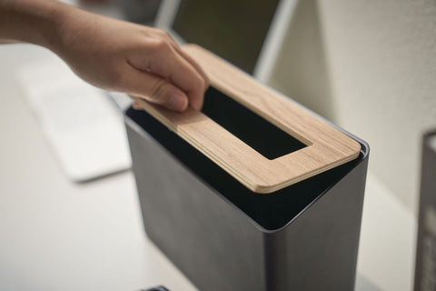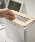 Deze stijlvolle tafelprullenbak van Yamazaki maakt het verzamelen van kleiner afval makkelijker. Hij past op ieder tafelblad en maakt het weggooien van afval gemakkelijk, dankzij het verwijderbare deksel. Door de houten bovendeksel voegt de bak een warm accent toe aan iedere tafel.