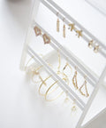 Deze eenvoudige en mooie oorbellenhouder van Yamazaki heeft drie levels om je oorbellen in verschillende vormen en maten op te hangen. Gemaakt van staal en ontworpen in Japan.