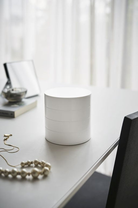 De accessoiretoren uit de Tower serie van Yamazaki is eenvoudig ontworpen, maar toch heel stijlvol. Door zijn 4 lagen biedt de toren voldoende ruimte voor al je favoriete accessoires. Draai de lades uit de toren om snel je favoriete accessoire te zien en presenteer ze op een aantrekkelijke manier.