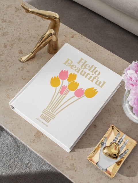 Het Hello Beautiful fotoalbum van Printworks doet meer denken aan een kunstboek dan aan een traditioneel fotoalbum. Door deze te gebruiken als koffietafelboek heb je altijd je dierbare herinneringen dichtbij en voeg je ook een stijlvol accent toe aan je interieur. Het fotoboek is bedekt met textiel aan zowel de binnnen- als buitenzijde en heeft ruimte voor twee 10x15 foto's op elke pagina met ruimte voor een notitie. Het boek bevat 30 zuurvrije zwarte fotopapieren van de hoogste kwaliteit en je kunt gemakkelijk de foto's aan de pagina's bevestigen met fotocorners of stickers. Als je meer pagina's nodig hebt, kun je extra foto papier toevoegen, tot maximaal 40 pagina's.