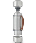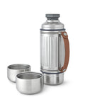 Deze stijlvolle fles is volledig lekvrij en voorzien van twee dubbelwandige roestvrijstalen bekers. De bekers, met een ruime inhoud van 200 ml per stuk, kunnen aan de boven- en onderkant van de fles worden vastgeschroefd. Dankzij de brede basis blijven ze stabiel, zelfs op oneffen terrein.