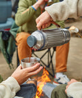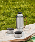 De thermosfles is uitgerust met een stevige nylon draagriem die het gemakkelijk maakt om de fles mee te nemen of in te schenken. De riem is eenvoudig te verwijderen wanneer je de fles wilt schoonmaken. De stalen dop heeft een handig schenksysteem dat morsen minimaliseert en ervoor zorgt dat je dranken goed warm blijven.
