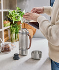De Explorer Flask Duo van Black+Blum is ontworpen voor avonturiers die altijd voorbereid willen zijn, of je nu een wandeltocht maakt, op het strand ontspant of de skipistes opgaat. Met een inhoud van 1 liter en een robuust ontwerp is deze thermosfles jouw ideale metgezel. De hoogwaardige vacuümisolatie houdt je dranken tot 24 uur heet of ijskoud, zodat je op elk moment van de dag kunt genieten van een verfrissend drankje of een warme kop thee.