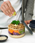 De Glass Lunch Bowl van Black+Blum is modern maar straalt ook een praktische retro-charme uit. De combinatie van roestvrij staal en een basis van houtvezelpolymeer om het glas te beschermen is een prachtige materiaalkeuze. Het eindresultaat is innovatief en het biedt een duurzame, functionele oplossing die lang meegaat.