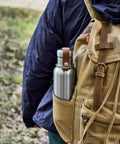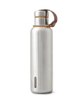 Neem deze drinkfles van Black+Blum met je mee op avontuur of stop hem in je tas wanneer je naar het werk gaat. De fles heeft een retro-moderne uitstraling en het geborstelde staal wordt gecomplementeerd door de kunstleren band. In tegenstelling tot de meeste waterflessen op de markt heeft dit ontwerp slechts een vleugje kleur in de siliconen afdichting en draagring. Dit is met opzet gedaan zodat het geen mode-item wordt, maar eerder een gebruiksbezit dat gewaardeerd en genoten wordt vanwege zijn praktische bruikbaarheid. De fles kan door het gebruik krassen, deuken of roest ontwikkelen, maar dit draagt alleen maar bij aan de charme van het ontwerp.