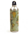 Chrome 750ml water bottle featuring a classically coloured vintage world map printed section. Aluminium 750ml. Not suitable for microwave or dishwasher use. Wash before use. Do not leave liquid in bottle for longer than 12 hrs.