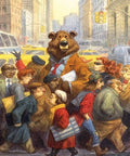 De afbeelding op deze puzzel van New York Puzzle Company komt uit het boek The Bear Went Over the Mountain en is geïllustreerd door Peter de Sève. Hoofdpersonage Hal Jam is een grote zwarte beer die een manuscript onder een boom in de bossen van Maine vindt. In pak en stropdas gaat hij naar de grote stad om zijn roem en fortuin te zoeken en navigeert hij door de corrupte wereld van de mens. De puzzel heeft 1000 stukjes en heeft een linnen stijl afwerking zodat de puzzel minder glimt. Aanbevolen leeftijd: 13+ jaar.