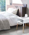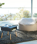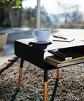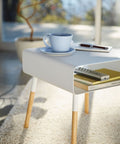 De lage bijzettafel van Yamazaki bespaart ruimte en biedt tegelijkertijd voldoende opbergruimte voor bijvoorbeeld je mobiele telefoon en tijdschriften. Door zijn perfecte hoogte past hij goed naast je bank of bed en helpt bij het creëren van een stijlvolle sfeer.
