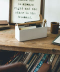 Met deze eenvoudig ontworpen pennenhouder kun je niet alleen pennen en potloden netjes opbergen, maar ook brieven en andere post. De eenvoudige vintage stijl brengt de retro-look naar je bureau. Het handvat aan de bovenzijde maakt hem makkelijk om mee te nemen. Gemaakt van staal en hout en ontworpen in Japan.