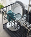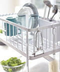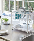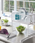 Dit slimme afdruiprek van Yamazaki laat het water automatisch weglopen. Het water dat van de borden en andere gerei afkomt, druppelt naar de bodem en stroomt direct terug naar de gootsteen. Door de twee niveau's biedt het meer ruimte voor borden en ander keukengerei. Gemaakt van staal en synthetisch materiaal en ontworpen in Japan.