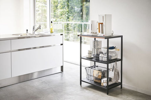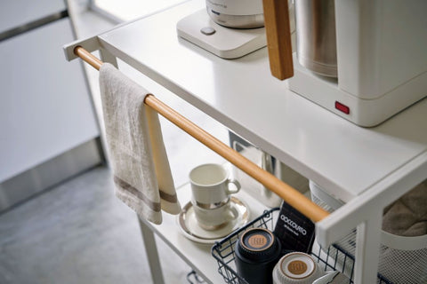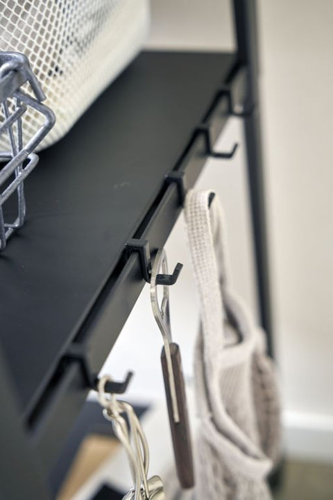 Dit handige opbergrek van Yamazaki heeft 3 niveaus waarin je je spullen op een stijlvolle manier kunt ordenen. Houd je werkblad vrij en schoon door al je apparaten en ander keukengerei op de verschillende niveaus op te bergen. De stijlvolle houten beugel aan de voorkant is handig om handdoeken aan te hangen, terwijl je aan de meegeleverde haken kleinere voorwerpen zoals ovenwanten of flesopeners kunt hangen. Het is een strak en stevig ontwerp, dat geweldig staat in iedere keuken.