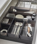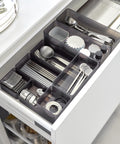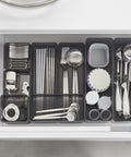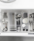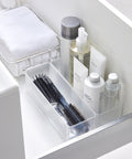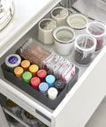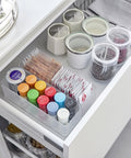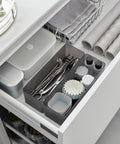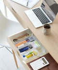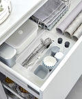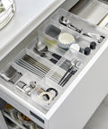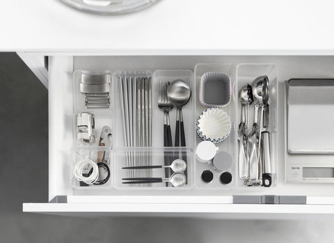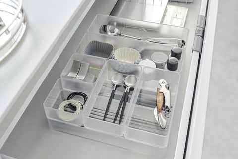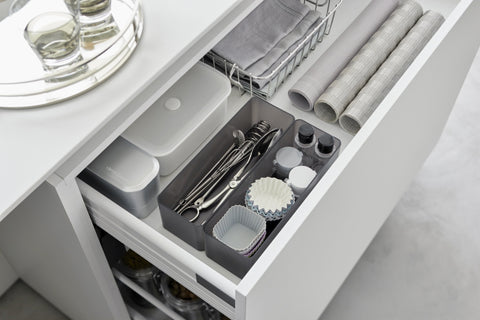 Deze multifunctionele organizer van Yamazaki is een veelzijdige oplossing voor opslag in je hele huis. Of je nu je lades netjes wilt houden of kleine spullen wilt organiseren, deze handige organizer biedt uitkomst. Met zijn ruime keuze aan formaten kun je verschillende items gescheiden en overzichtelijk bewaren. Dankzij het stapelbare ontwerp kun je zelfs in de beperktste keuken- of badkamerlades ruimte besparen en alles netjes georganiseerd houden. In de keuken komt de organizer goed van pas voor je favoriete keukengerei of je verzameling kruiden en specerijen. In de badkamer kun je nu gemakkelijk je make-up en toiletspulletjes op een overzichtelijke manier opbergen. Maar het bakje vindt ook zijn plek in bijvoorbeeld de woonkamer waar je afstandsbedieningen of decoratieve items netjes kunt ordenen.
